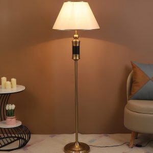 “LEARC antique brass finish floor lamp with cream textured shade having golden border FL5014-B” has been added to your cart.