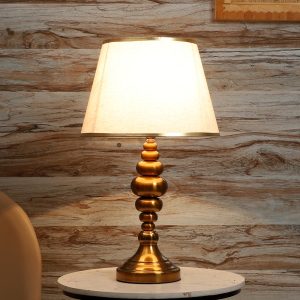 “LEARC gold bronze and white finish table lamp with light brown shade TL5017-F” has been added to your cart.