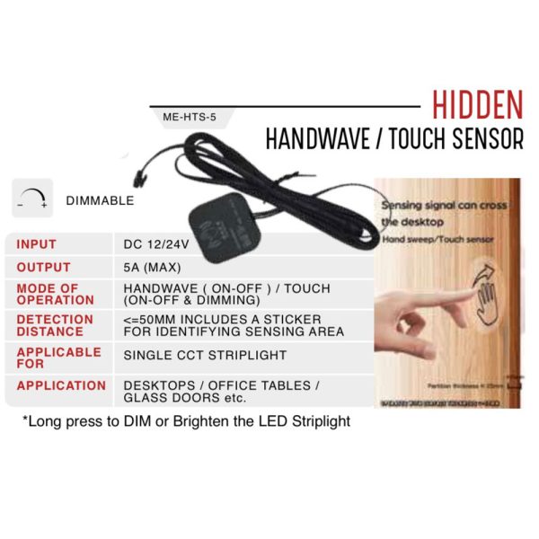 HIDDEN HANDWAVE AND TOUCH SENSOR FOR LED STRIPS.