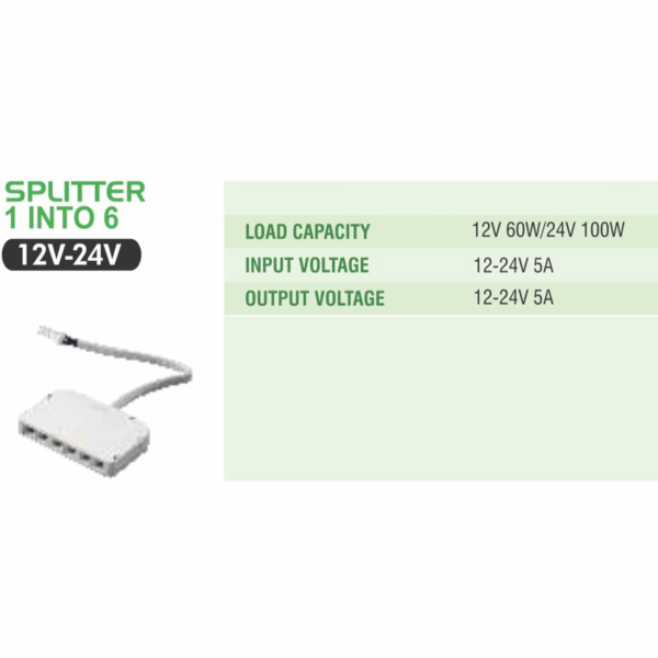 LEARC 12 volt 1 into six splitter for cabinet and wardrobe lighting.