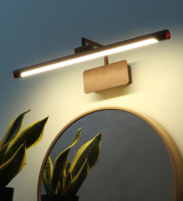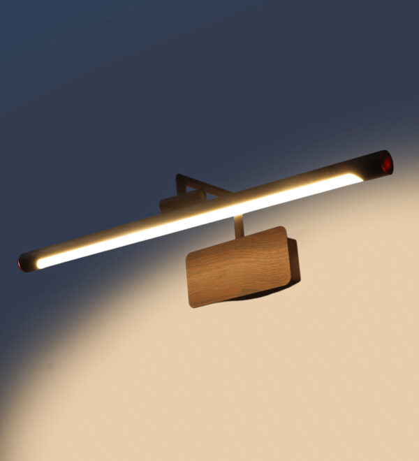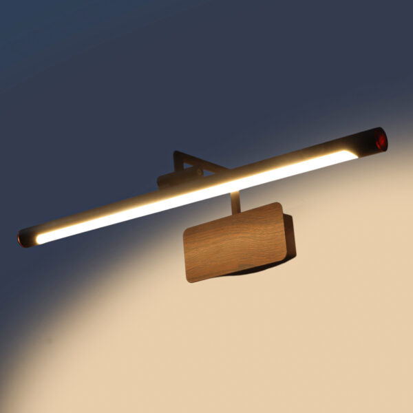 LEARC 12 watt 20 inch wood finish colour changing 3 in 1 adjustible LED picture light. Colour changes fom white to neutral white to yellow by switching on and off.