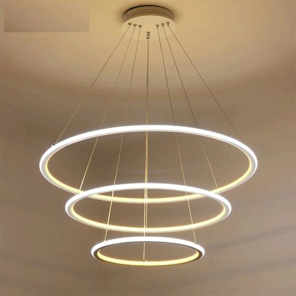 LEARC 3 ring 18-24-30 inch, 48+64+80 watt white finish LED Hanging Light with top quality LED and driver 3K, Can be custimized to any size, colour finish, mettallic plating, colour of light output as per requirement.