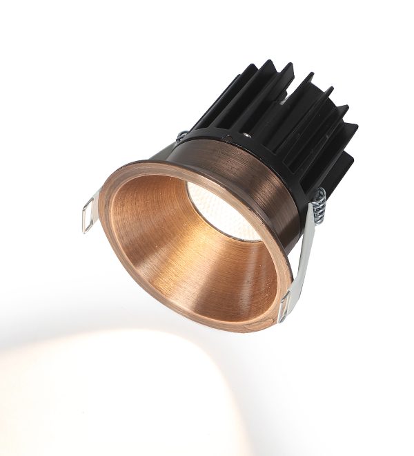 Antique brass finish, aluminium die cast round 6W LED COB concealed ceiling light with top quality LED and driver. Application includes both indoor and outdoor ceilings. Available in 3000K, 4000K and 6000K ie warm white, nuetral white and white light output.