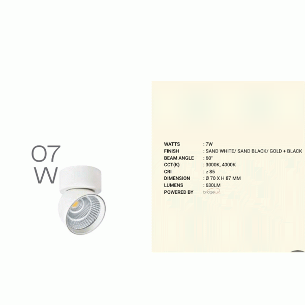 LEARC aluminium antique finish 7 watt all angle adjustible surface spot light.