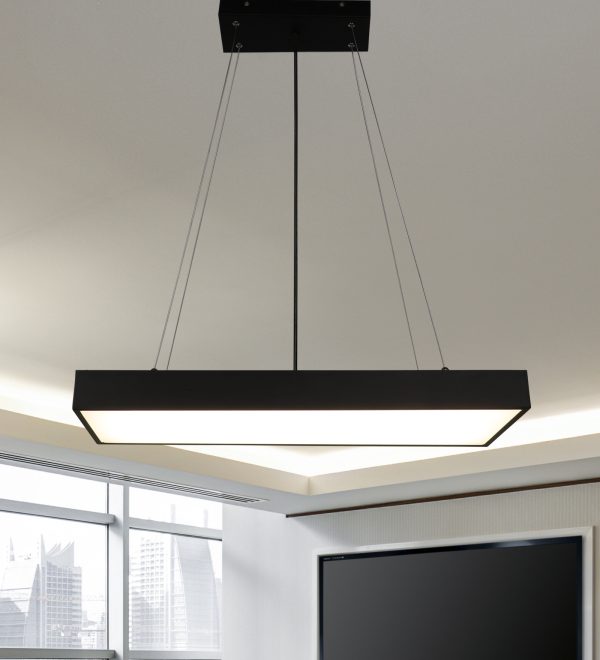 LEARC aluminium black 10 inch X 2 feet 80 watt colour changing 3 in 1 LED rectangular Hanging Light HL8064-3C