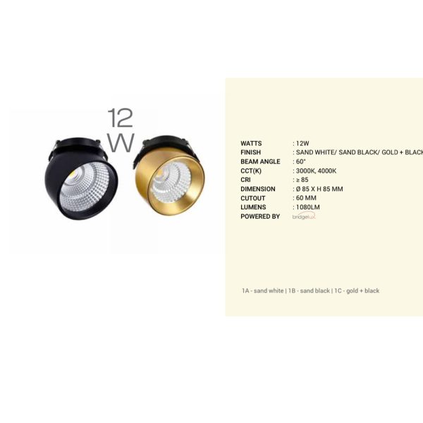 LEARC aluminium black finish 12 watt all angle adjustible recessed spot light.