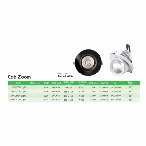 LEARC aluminium black finish 30 watt heavy duty LED zoom down light for commercial applications GS1507