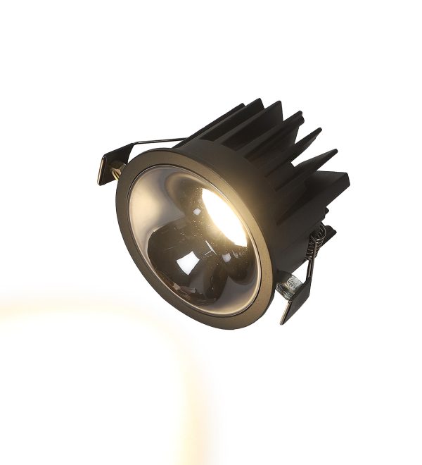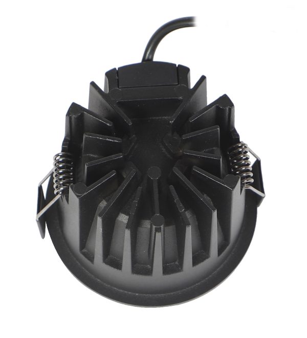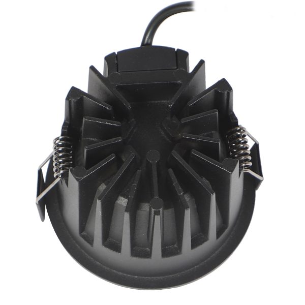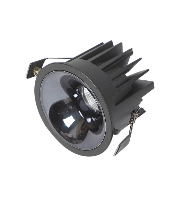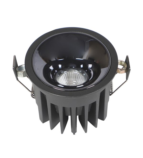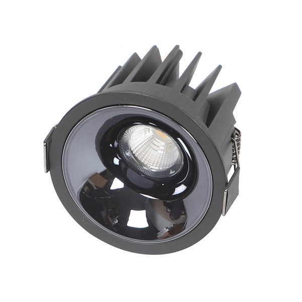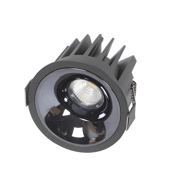 Powder coated black finish with glossy black reflector, aluminium die cast round 12W LED COB concealed ceiling light with top branded Bridgelux LED and Philips or equivalent LED driver. Application includes both indoor and outdoor ceilings. Available in 3000K, 4000K and 6000K ie warm white, nuetral white and white light output. Also available in 5000k colour temperature and colour changing 3 in 1 options.