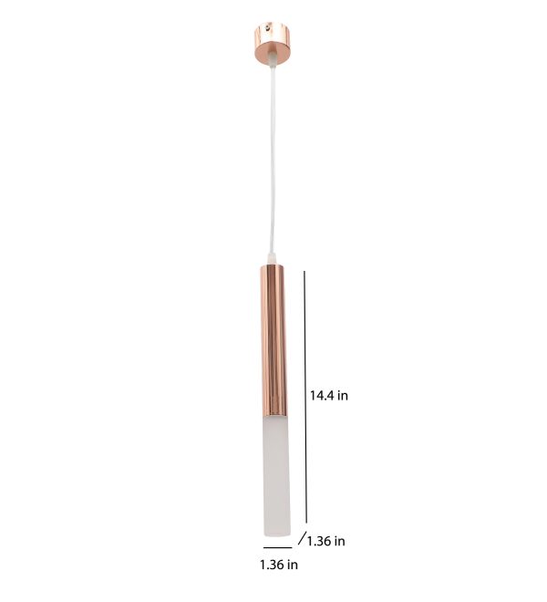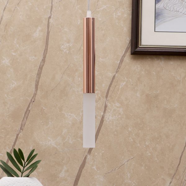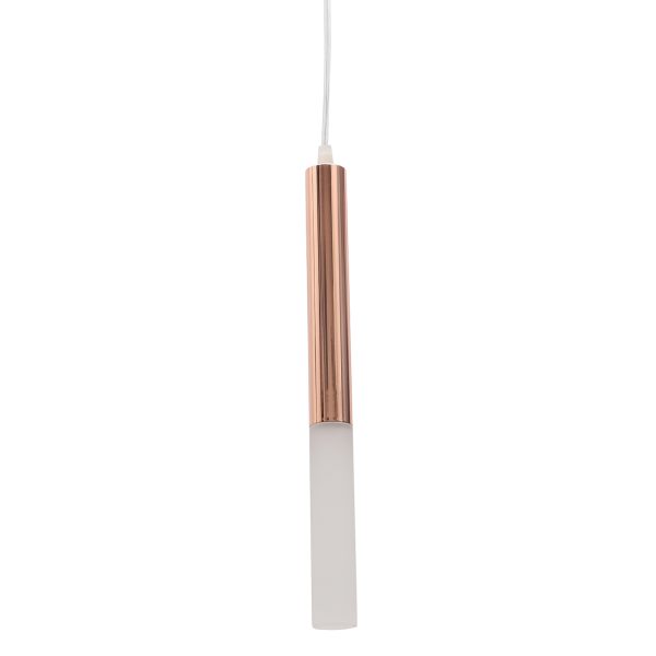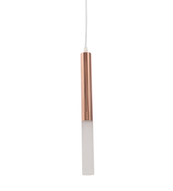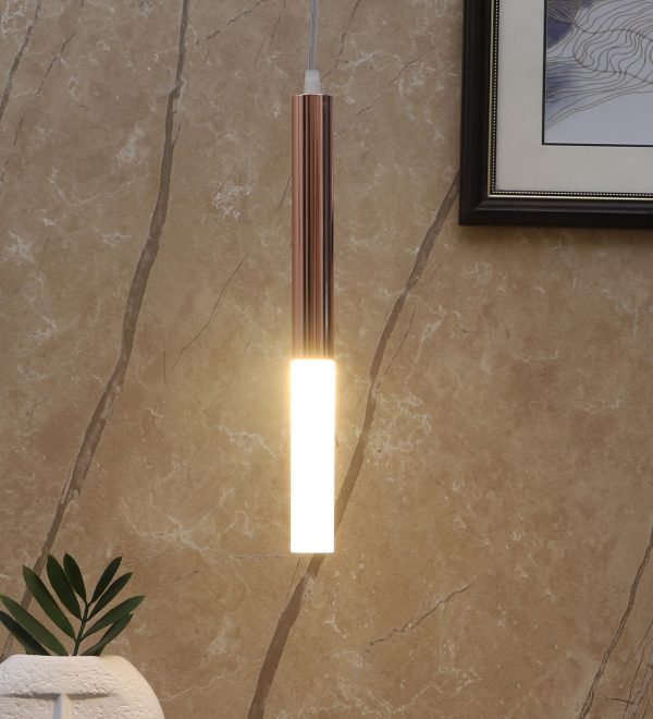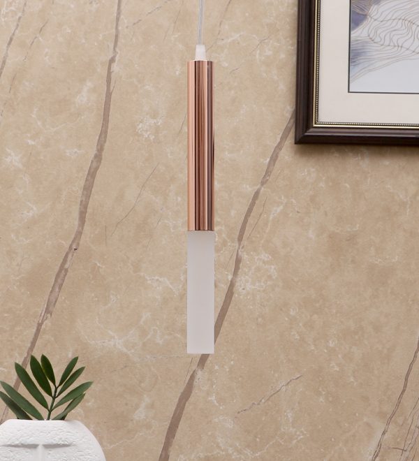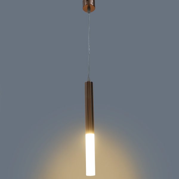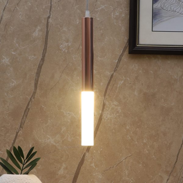 Copper finish, sleek, modern, 6 watt LED hanging light having top branded LED and driver warm white (yellow) light output The suspension can be adjusted at time of installation to the desired height. Can be made available in a cluster of multiple quantities with round, square or rectangular base as per requirement . Application includes both residential and comercial premises wherever it matches with your interiors. Can be customised as per requirement in terms of finish, wattage, height, diameter.