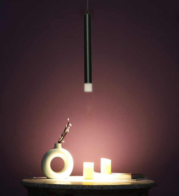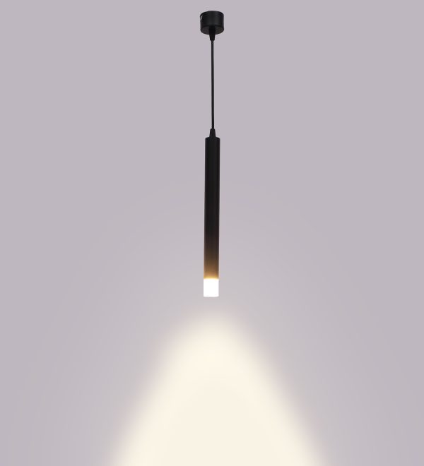 Black finish, sleek, modern, 6 watt LED hanging light having top branded LED and driver warm white (yellow) light output The suspension can be adjusted at time of installation to the desired height. Can be made available in a cluster of multiple quantities with round, square or rectangular base as per requirement . Application includes both residential and comercial premises wherever it matches with your interiors. Can be customised as per requirement in terms of finish, wattage, height, diameter.