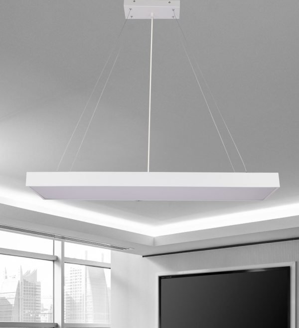 LEARC aluminium white 10 inch X 3 feet 80 watt dimmable and tunable LED rectangular Hanging Light with remote HL8067-DT