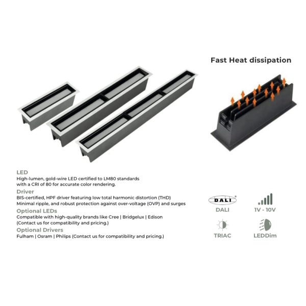 LEARC aluminium white black finish 30 watt recessed linear wall washer light with top branded LED and Driver EP7139