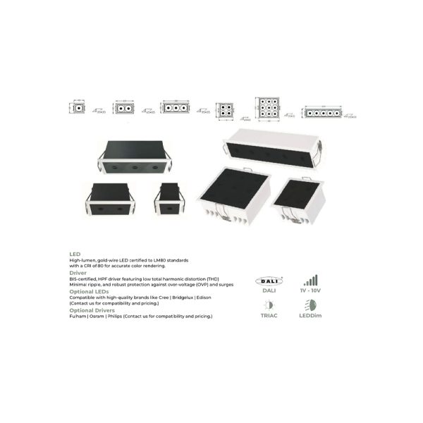 LEARC aluminium white black finish 9X3 watt recessed linear light with top branded LED and Driver.