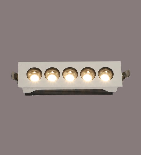 LEARC aluminium white finish 5 X 2.4 watt LED Linear down light with Bridgelux COB and Fulham LED driver.