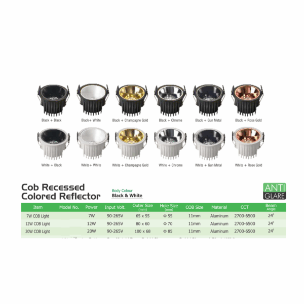 LEARC aluminium white finish chrome reflector anti glare 12 watt LED down light GS1489