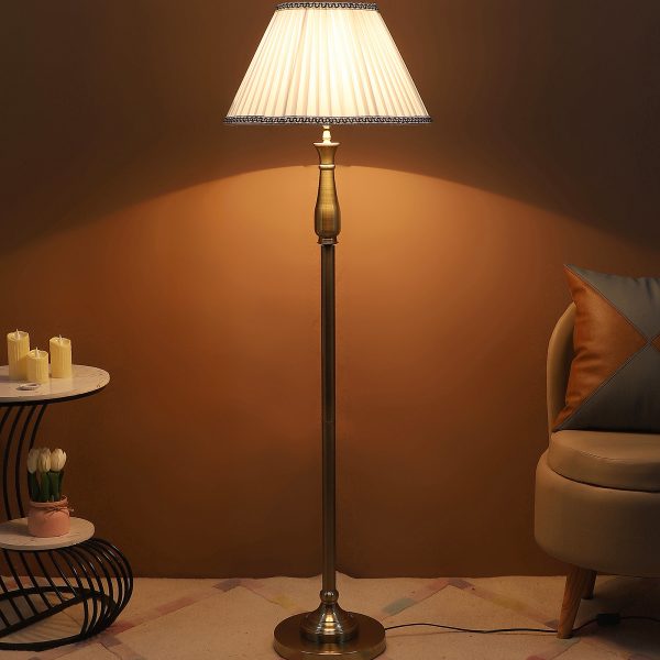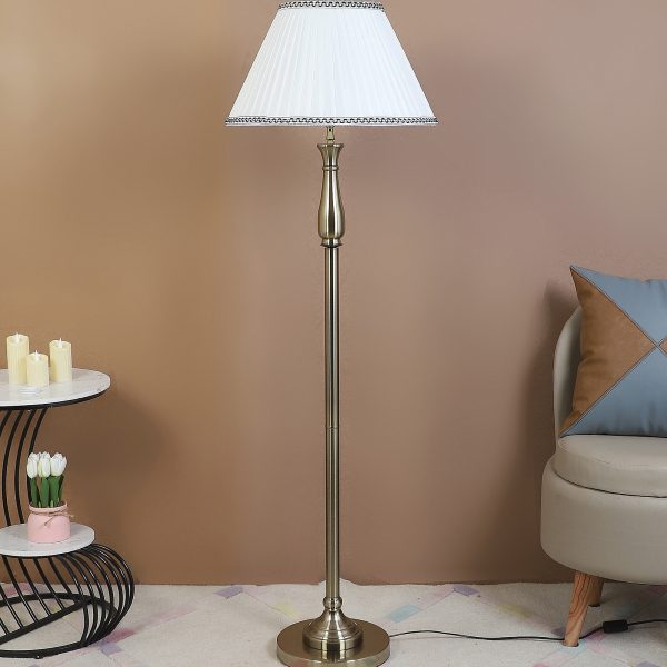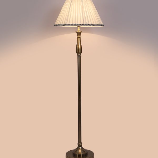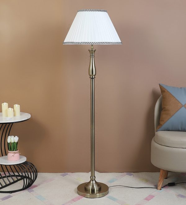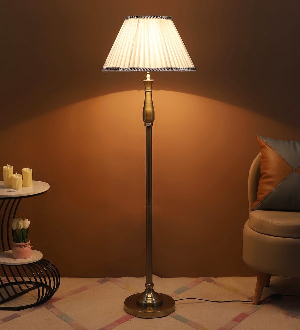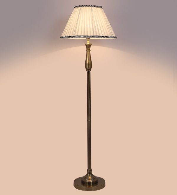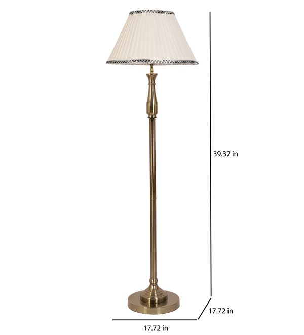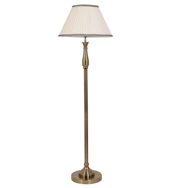LEARC antique brass finish floor lamp with cream textured shade having golden border FL5014-B