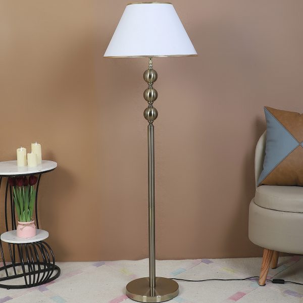 LEARC antique brass finish floor lamp with light gold shade having golden border FL5015-D