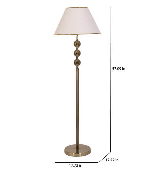 LEARC antique brass finish floor lamp with cream textured shade having golden border FL5015-B