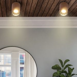 Brown (wood finish with grains) round LED surface ceiling light. Can be used both indoors and outdoors. Scene Switch Feature : With it’s scene switch feature the downlighter can change it’s color into three modes i.e Cool Day Light, Natural White and Warm White. ON/OFF of the switch in 2 seconds leads to the change in color. Choose the color of your downlighter according to your mood.