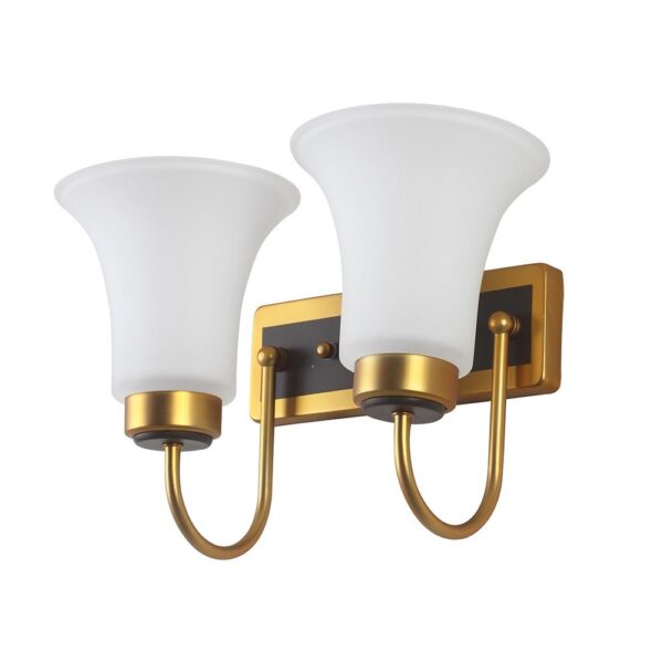 Antique brass dark brown (wood) finish double wall light having bell shaped white glass made of mild steel. It is maintenance free., It is easy to remove glass and wash them. Comes with an E27 holder, only the change of lamp is required, which is available locally everywhere. Application includes both residential and commercial premises wherever it matches with your interiors. Matching single wall light code – WL2269. Matching chandelier code – CH361. Can be customized as per requirement in case of bulk quantities. Lamp not included.