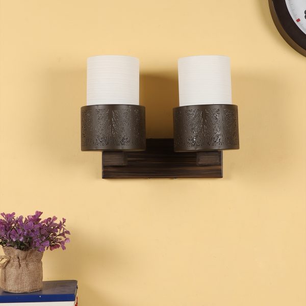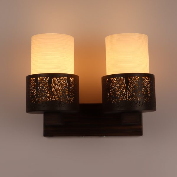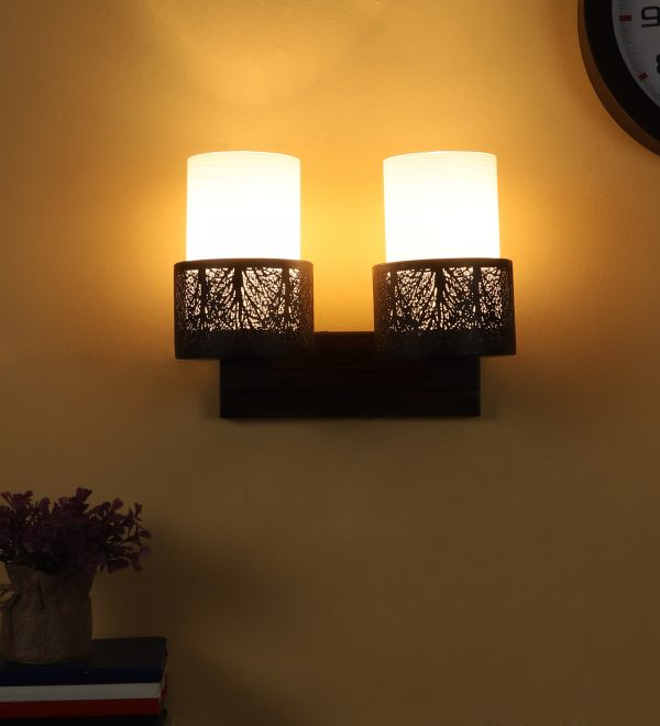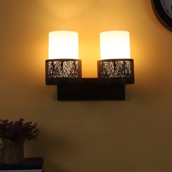 Dark brown (wood) finish, round long glasses with designer wooden cover, double wall light made of wood and mild steel. It is maintenance free, easy to remove glass and wash them, comes with an E27 holder, only the change of lamp is required, which is available locally everywhere. Application includes both residential and commercial premises wherever it matches with your interiors. Matching single wall light code -WL2609. Matching chandelier code – CH403-13, CH403-6. Can be customized as per requirement in case of bulk quantities. Lamp not included.