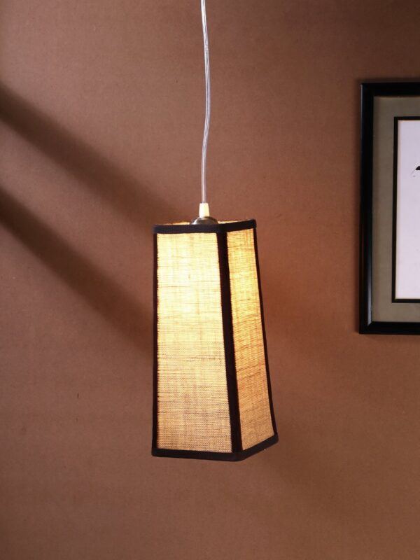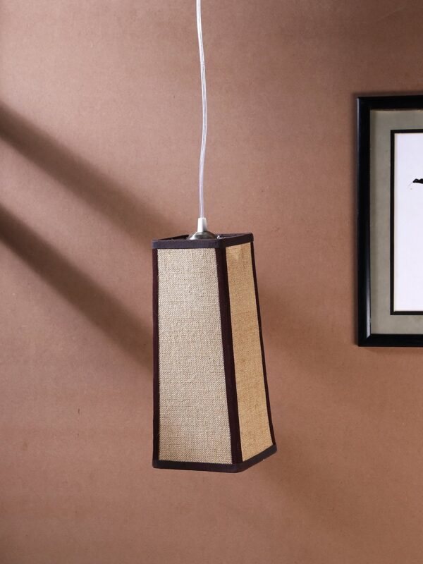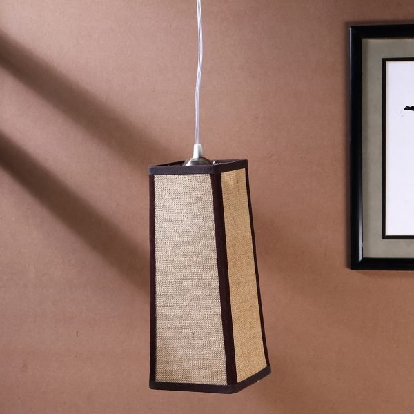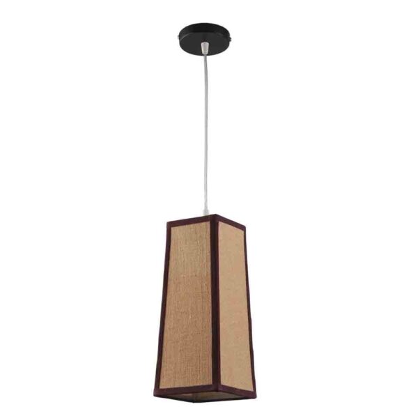 Brown single hanging light made of fabric shade and mild steel attachment in Silver (satin nickel) finish. The suspension can be adjusted at time of installation to the desired height. It is maintenance free, comes with an E27 holder, only the change of lamp is required, which is available locally everywhere. Application includes both residential and commercial premises wherever it matches with your interiors. Available in small size with code HL3718. Can be customized as per requirement in case of bulk quantities. Lamp not included.