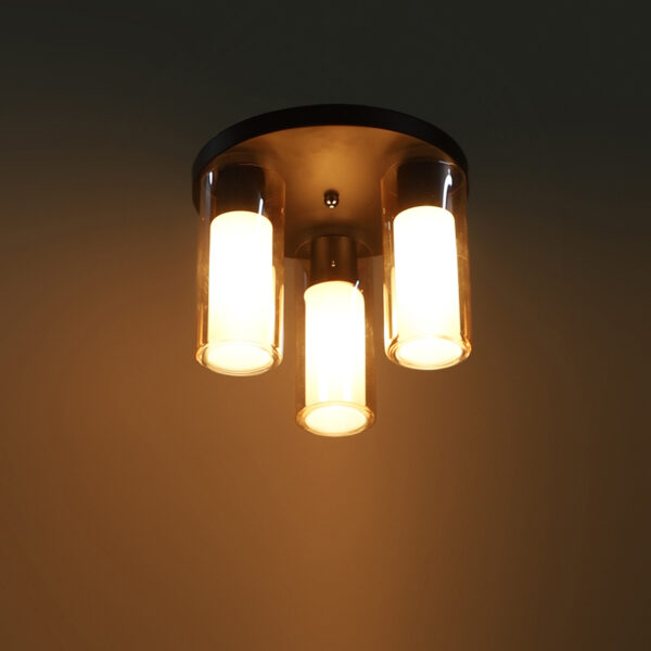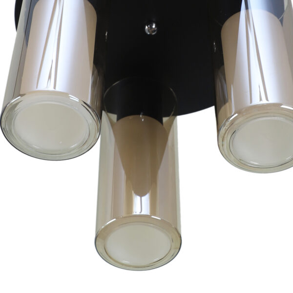 Dark brown (wood) finish, sleek, cylindrical champagne coloured glass mounted on a round plate made of mild steel having ten lights. This is a fixed type chandelier in which the base plate is fixed to the ceiling with the help of straight clamp and screws. It is maintenance free, easy to remove glass and wash them, comes with an E14 holder, only the change of lamp is required, which is available locally everywhere. Application includes both residential and commercial premises wherever it matches with your interiors. Matching chandelier variations – CH353-10, CH353-6. Matching hanging variations – HL3980-1, HL3980-3, HL3980-6, HL3980-10. Matching wall light code WL2211, WL2212. All designs available in silver (chrome) finish also. Can be customized as per requirement in case of bulk quantities. This along with its variants are the best selling products in our catalogue. LAMP NOT INCLUDED.