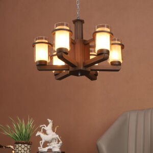 Dark brown (wood) finish, sleek, cylindrical champagne coloured glass mounted on a round plate made of mild steel having ten lights. This is a fixed type chandelier in which the base plate is fixed to the ceiling with the help of straight clamp and screws. It is maintenance free, easy to remove glass and wash them, comes with an E14 holder, only the change of lamp is required, which is available locally everywhere. Application includes both residential and commercial premises wherever it matches with your interiors. Matching chandelier variations – CH353-10, CH353-6. Matching hanging variations – HL3980-1, HL3980-3, HL3980-6, HL3980-10. Matching wall light code WL2211, WL2212. All designs available in silver (chrome) finish also. Can be customized as per requirement in case of bulk quantities. This along with its variants are the best selling products in our catalogue. LAMP NOT INCLUDED.