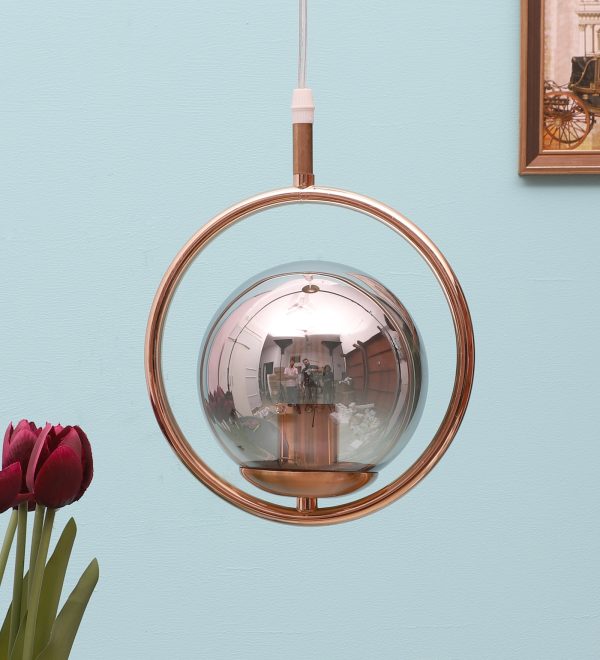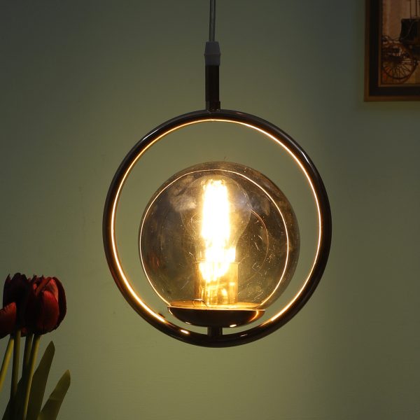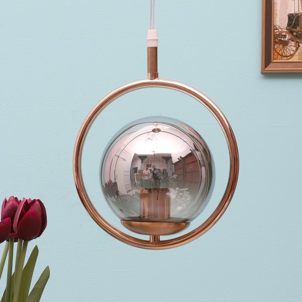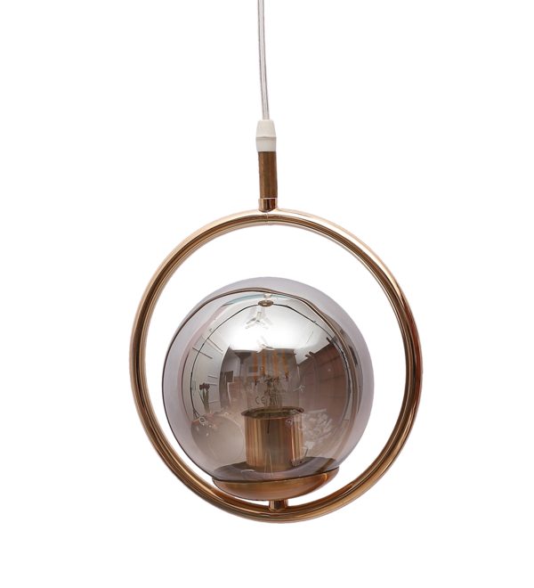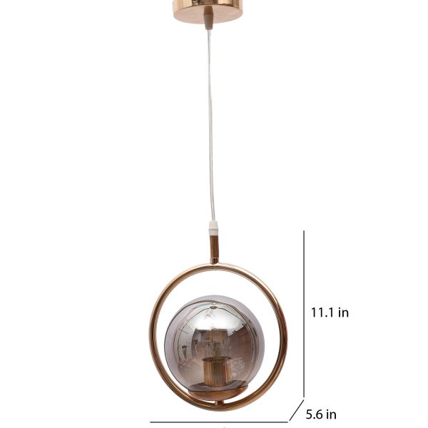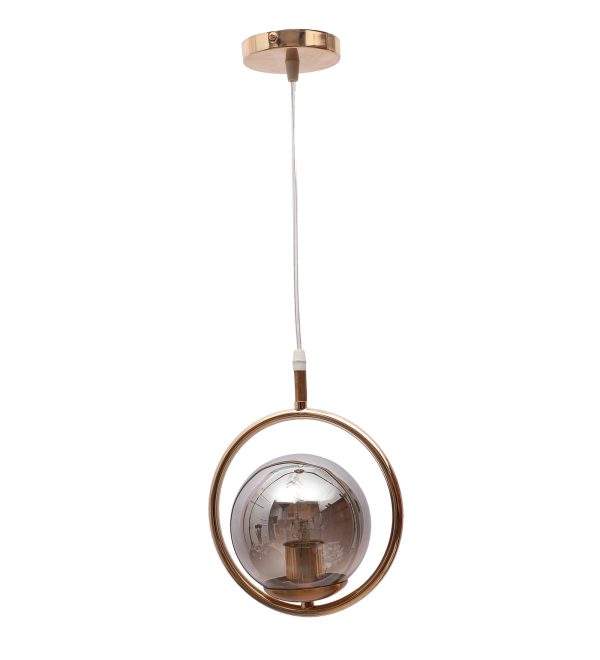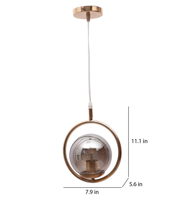 Gold modern, mild steel single hanging light in smoky doom glass. The suspension can be adjusted at time of installation to the desired height. It is maintenance free, comes with an E27 holder, only the change of lamp is required, which is available locally everywhere. Application includes both residential and commercial premises wherever it matches with your interiors. Can be customized as per requirement. LAMP NOT INCLUDED.