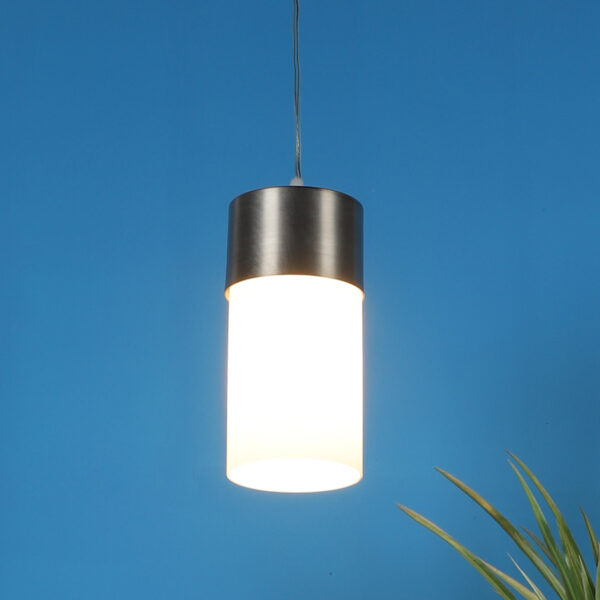 Silver (satin nickel) finish, modern cylindrical glass, single hanging light made of mild steel and glass. It is one of the regular design which is never out of trend. The suspension can be adjusted at time of installation to the desired height. It is maintenance free, easy to remove glass and wash them, comes with an E27 holder, only the change of lamp is required, which is available locally everywhere. Application includes both residential and commercial premises wherever it matches with your interiors. Matching three light code – HL3858-3, Matching dark brown (wood) finish code – HL3861-3, HL3861-1. Lamp not included.
