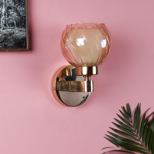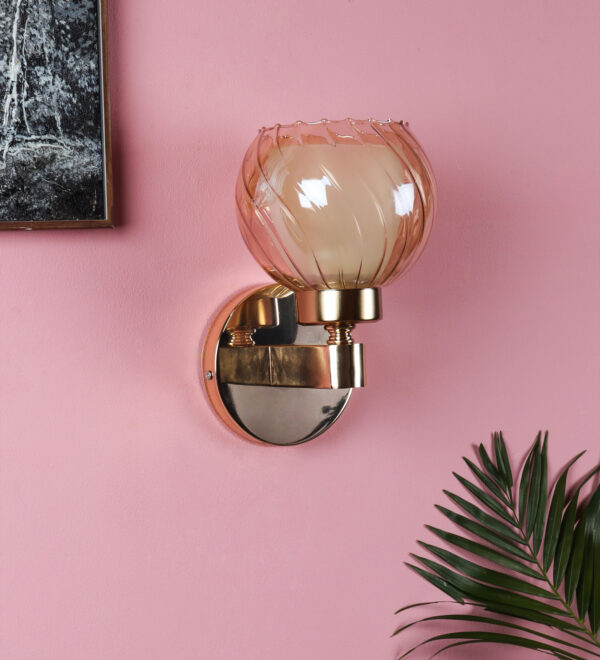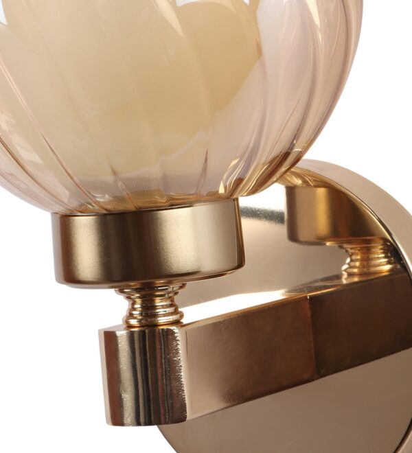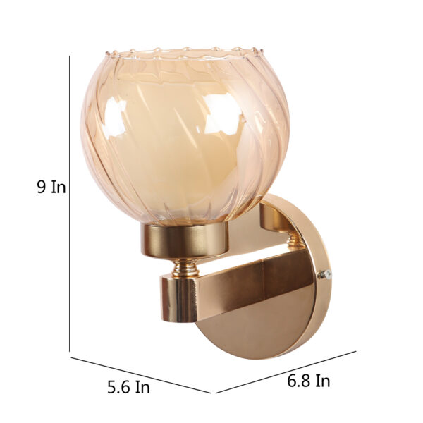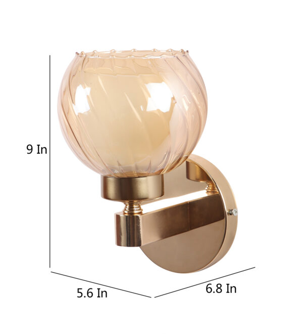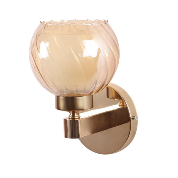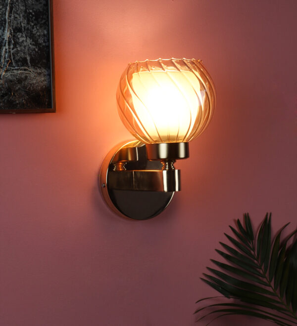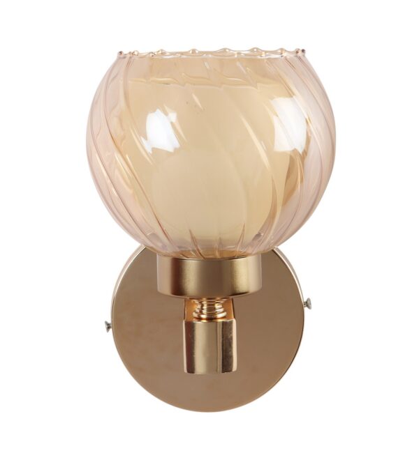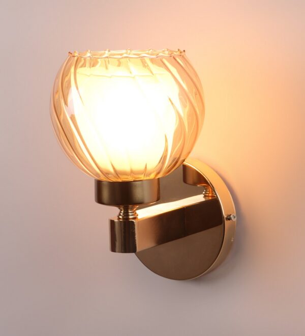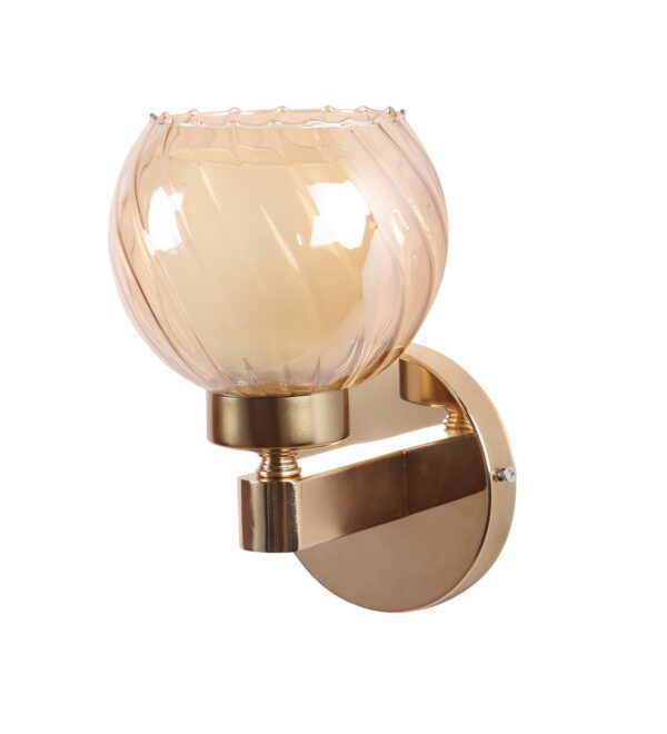 Gold finish, mild steel single wall light in Champaign colored two layered round glass. It is maintenance free, comes with an E27 holder, only the change of lamp is required, which is available locally everywhere. Matching double wall light code – WL2716. Application includes both residential and commercial premises wherever it matches with your interiors. Can be customized as per requirement in case of bulk quantities. LAMP NOT INCLUDED.