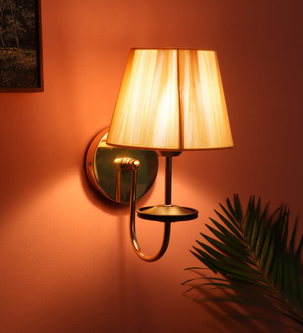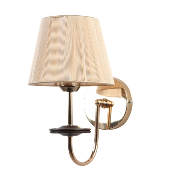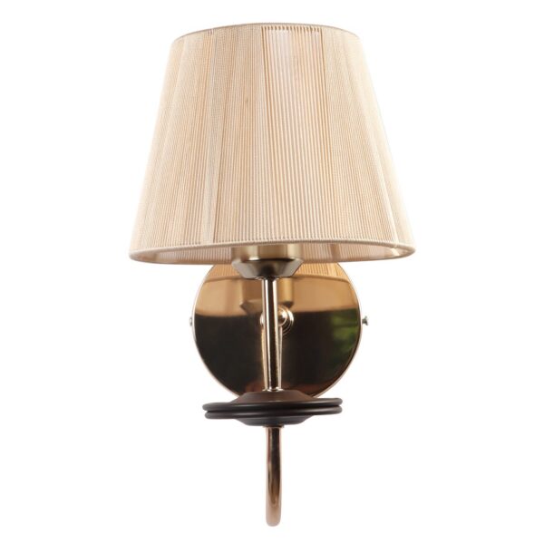 Gold finish modern single wall light with taper off white fabric shade. It is maintenance free, comes with an E27 holder, only the change of lamp is required, which is available locally everywhere. Application includes both residential and commercial premises wherever it matches with your interiors. It is ideal for installing on both sides of the bed at a low height. Ideal for hotel or guest rooms.Matching double wall light code – WL2720. LAMP NOT INCLUDED.