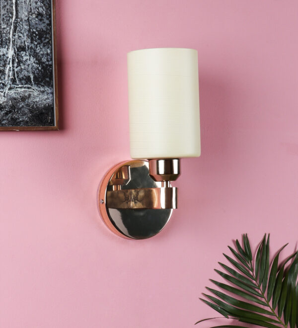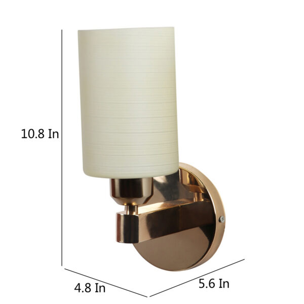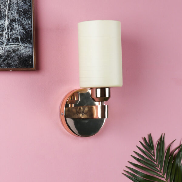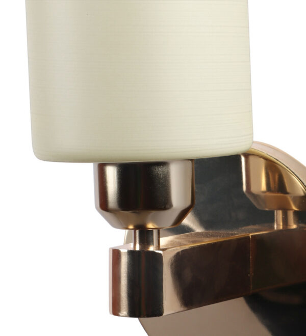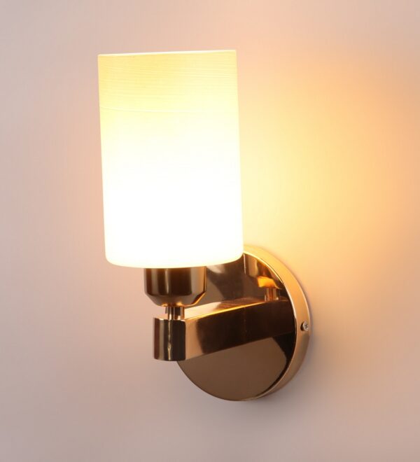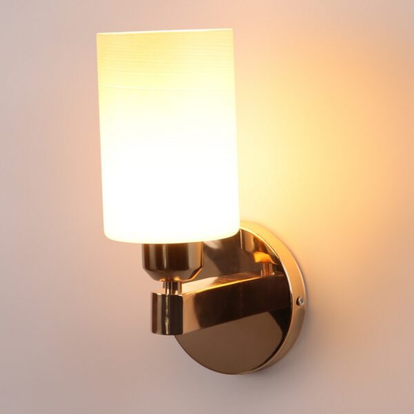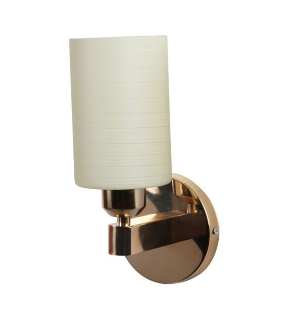 Gold modern, mild steel single wall light in white textured glass. It is maintenance free, comes with an E27 holder, only the change of lamp is required, which is available locally everywhere. Matching double wall light code – WL2722. Application includes both residential and commercial premises wherever it matches with your interiors. Can be customized as per requirement in case of bulk quantities. LAMP NOT INCLUDED.
