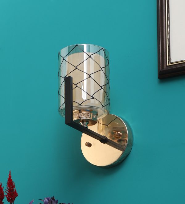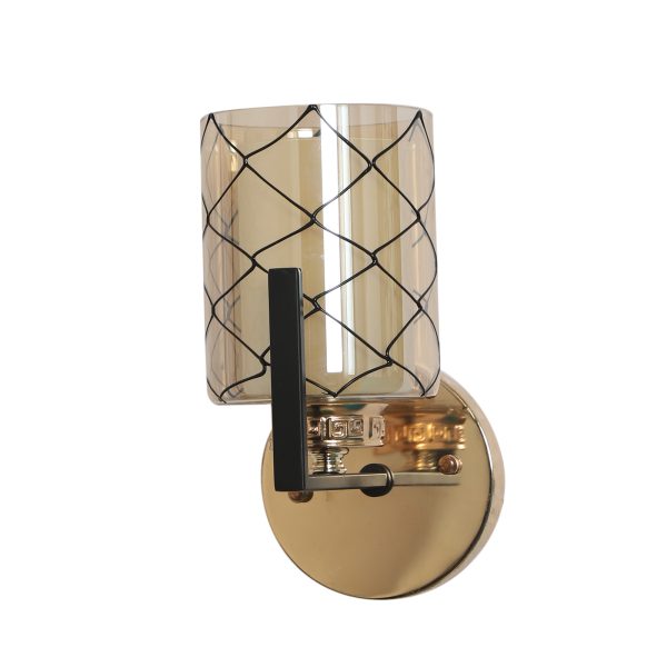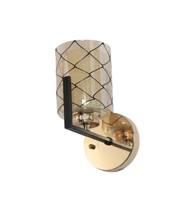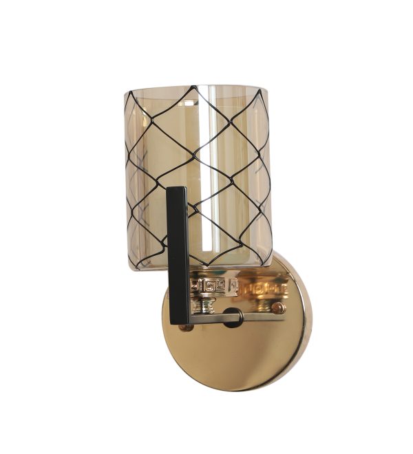 Gold and brown finish single wall light. Can be customized as per requirement. LAMP NOT INCLUDED.