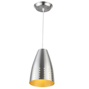 Silver (satin nickel) – white finish, modern aluminum single hanging light. The suspension can be adjusted at time of installation to the desired height. It is maintenance free, comes with an E27 holder, only the change of lamp is required, which is available locally everywhere. Codes of other color variations in the same design – HL3916-B, HL3916-G, HL3916-P, HL3916-Y, HL3950-1. Application includes both residential and commercial premises wherever it matches with your interiors. Can be customized as per requirement in case of bulk quantities. Lamp not included.