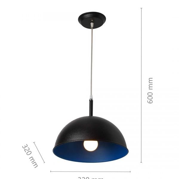 Powder coated black – blue finish, modern aluminum single hanging light. The suspension can be adjusted at time of installation to the desired height. It is maintenance free, comes with an E27 holder, only the change of lamp is required, which is available locally everywhere. Looks amazing with LED filament lamp. Available in bis size with code – HL3819 Codes of other color variations in the same design – HL3799, HL3800, HL3801, HL3802, HL3803, HL3804, HL3805, HL3806, HL3807, HL3808, HL3809, HL3810, HL3811 . Also available in big size with codes – HL3815, HL3816, HL3817, HL3818, HL3819, HL3820, HL3821, HL3822, HL3823, HL3824, HL3882, hl3884 Application includes both residential and commercial premises wherever it matches with your interiors. Can be customized as per requirement in case of bulk quantities. Lamp not included.
