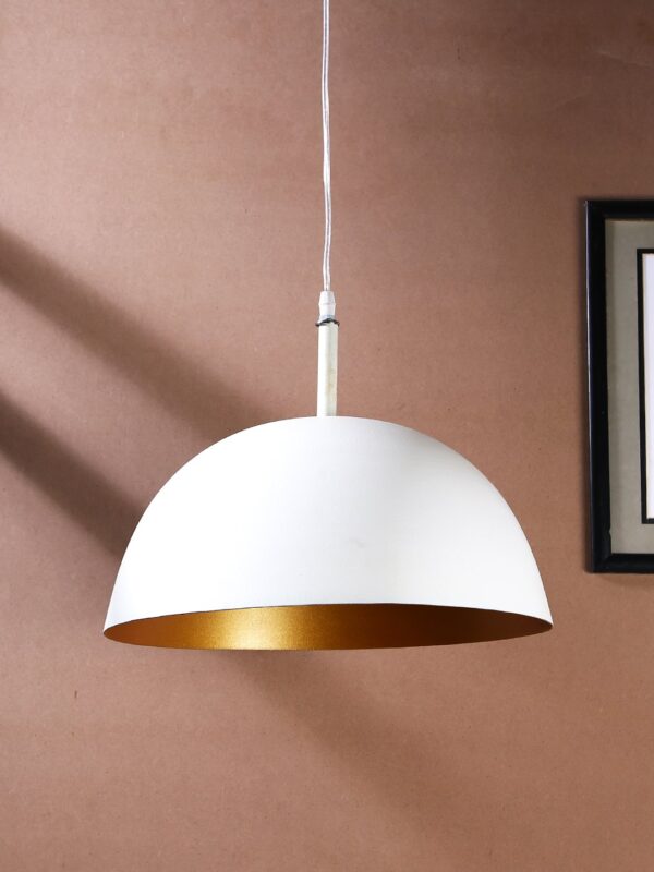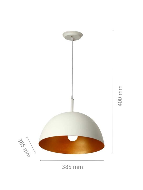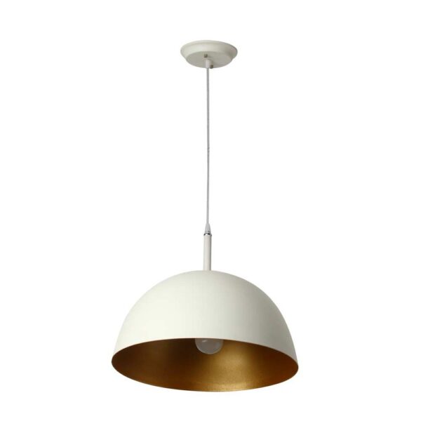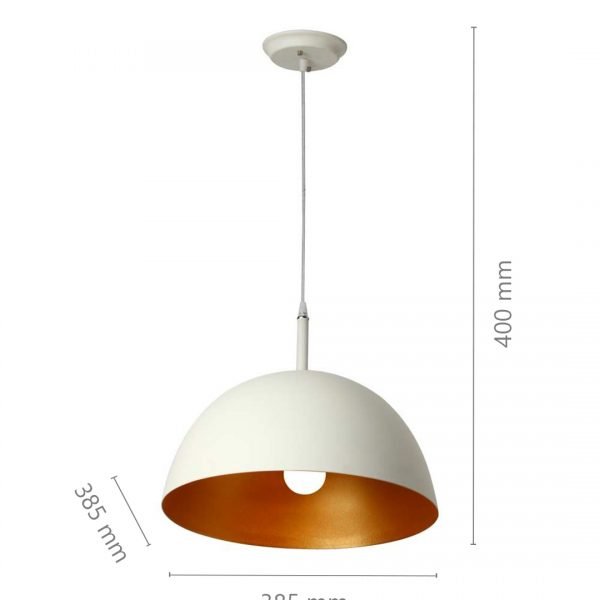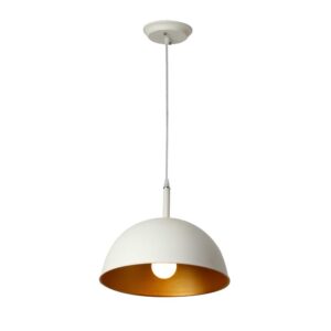 Powder coated white – gold finish, modern aluminium single hanging light. The suspension can be adjusted at time of installation to the desired height. It is maintenance free, comes with an E27 holder, only the change of lamp is required, which is available locally everywhere. Looks amazing with LED filament lamp. matching small size code – HL3805. Codes of other color variations in the same design – HL3814, HL3815, HL3816, HL3818, HL3819, HL3820, HL3821, HL3822, HL3823, HL3824, HL3882, hl3884. Also available in small size with codes – HL3798, HL3799, HL3800, HL3801, HL3802, HL3803, HL3804, HL3805, HL3806, HL3807, HL3808, HL3809, HL3810, HL3811. Application includes both residential and commercial premises wherever it matches with your interiors. Can be customized as per requirement in case of bulk quantities. Lamp not included.