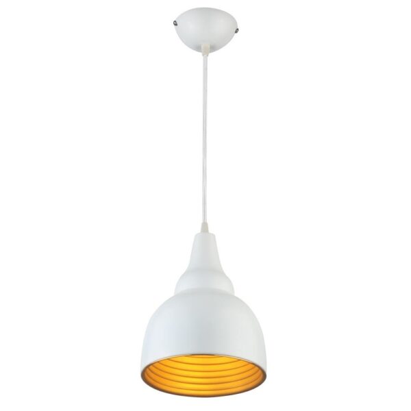 Powder coated white gold finish, modern aluminium single hanging light. The suspension can be adjusted at time of installation to the desired height. It is maintenance free, comes with an E27 holder, only the change of lamp is required, which is available locally everywhere. Application includes both residential and commercial premises wherever it matches with your interiors. Can be customized as per requirement in case of bulk quantities. Lamp not included.