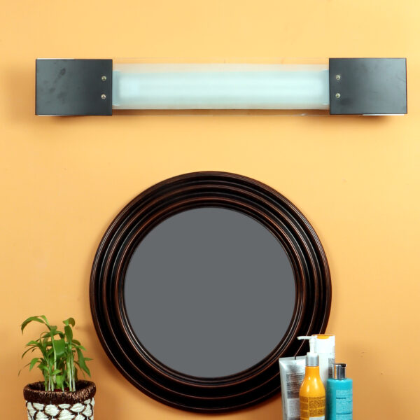 Steel mirror light in dark brown (wood) finish with a frosted glass. It comes with a 36 watt PLL tube for a very bright output. Great for installation above a mirror to provide illumination when shaving or applying make-up. It is maintenance free, comes with a PLL tube warm white (yellow) output. LED tube substitute also available easily in the market. It is maintenance free change of lamp is required, which is available locally everywhere. Also available in silver (satin nickel) finish with code ML264COMBO. It is one of the bestselling product. Lamp included.