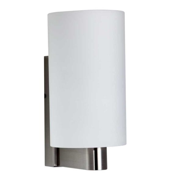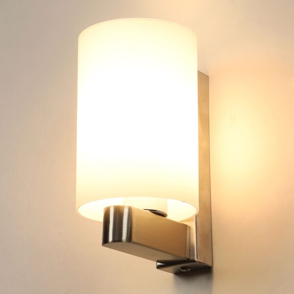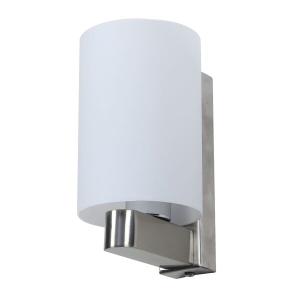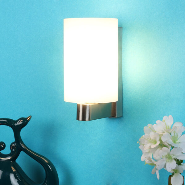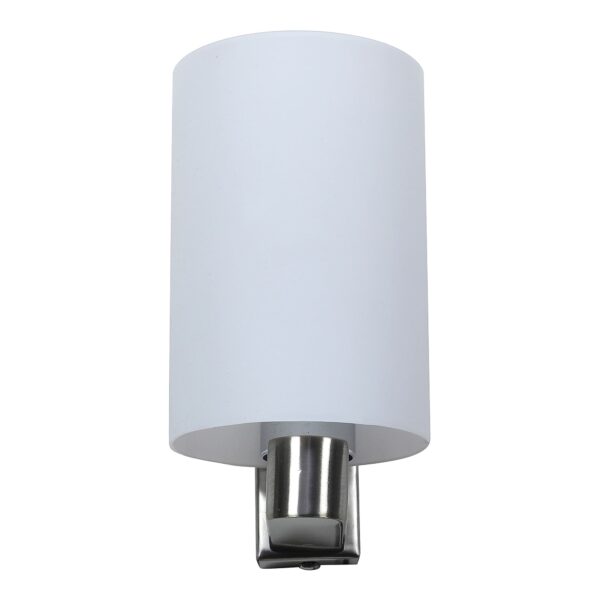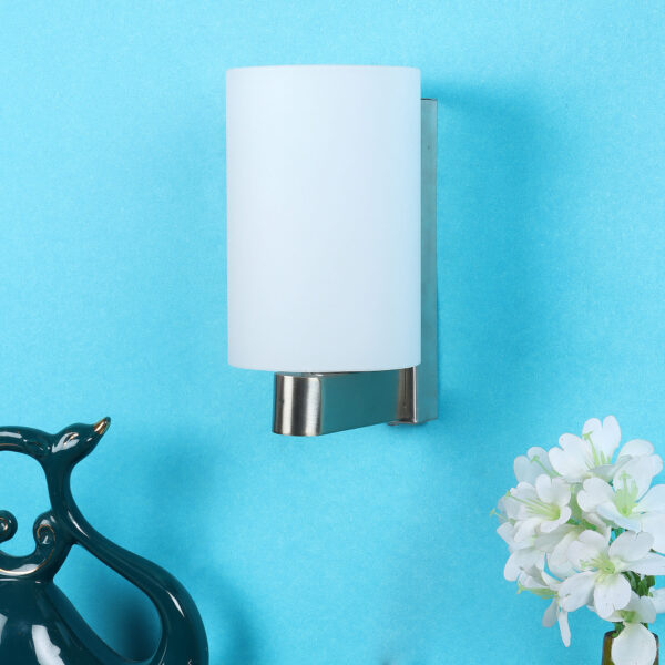 Modern silver (satin nickel) single wall light made of mild steel, with a big round cylindrical white glass. It is maintenance free, glass is open from both the sides that prevents any dust collection, easy to remove glass and wash it, comes with an E27 holder, only the change of lamp is required, which is available locally everywhere. You can of course swap out the bulb for one that is dimmable, has a higher light output or a different color temperature. Application includes both residential and commercial premises wherever it matches with your interiors. Matching double wall light code – WL1327. Matching hanging light – HL3857-1, HL3857-3. It is one of the top selling product in our catalogue. Can be customized as per requirement in case of bulk quantities. Lamp not included.