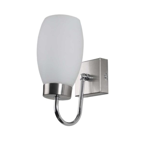 Silver (satin nickel) single wall light made of mild steel, with a chimney shaped white glass. It is maintenance free, easy to remove glass and wash it, comes with an E27 holder, only the change of lamp is required, which is available locally everywhere. You can of course swap out the bulb for one that is dimmable, has a higher light output or a different color temperature. Application includes both residential and commercial premises wherever it matches with your interiors. Matching double wall light code – WL1536. Matching hanging light code – HL3865-1, HL3865-3. It is one of the top selling product in our catalogue. Looks good in down facing direction also. Can be customized as per requirement in case of bulk quantities. Lamp not included.