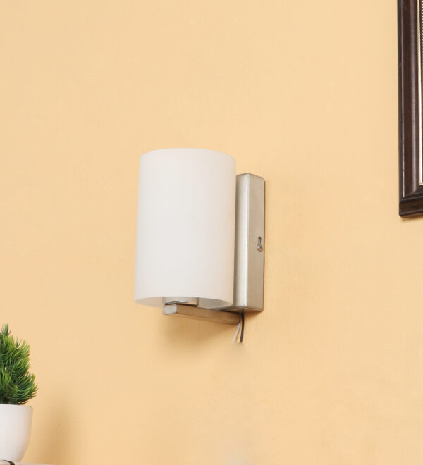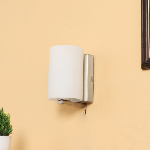 Modern silver (satin nickel) single wall light made of mild steel, with a big round cylindrical white glass. It is maintenance free, glass is open from both the sides that prevents any dust collection, easy to remove glass and wash it, comes with an E27 holder, only the change of lamp is required, which is available locally everywhere. You can of course swap out the bulb for one that is dimmable, has a higher light output or a different color temperature. Application includes both residential and commercial premises wherever it matches with your interiors. Matching double wall light code – WL1661. Matching hanging light – HL3857-1, HL3857-3. It is one of the top selling product in our catalogue. Can be customized as per requirement in case of bulk quantities. Lamp not included.