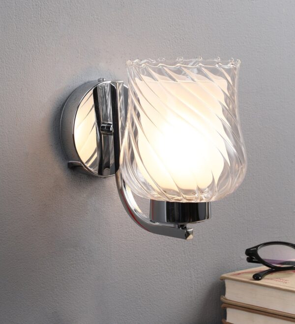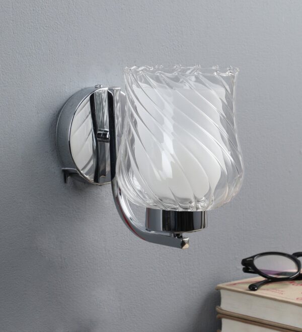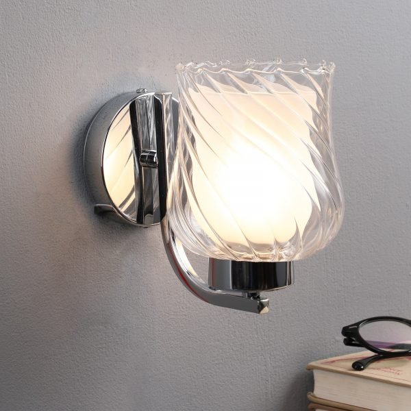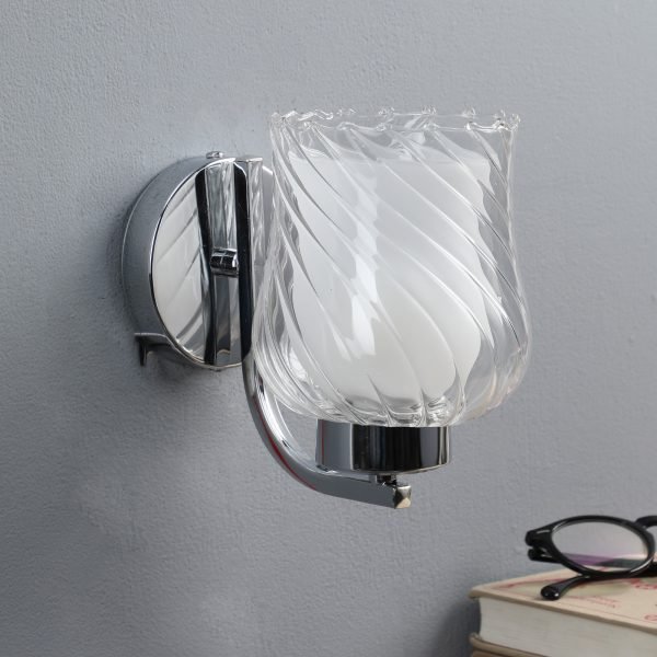 Modern silver (chrome) single wall light made of mild steel with a bell shaped double layered glass. It is maintenance free, easy to remove glass and wash it, comes with an E27 holder, only the change of lamp is required, which is available locally everywhere. You can of course swap out the bulb for one that is dimmable, has a higher light output or a different color temperature. Application includes both residential and commercial premises wherever it matches with your interiors. Matching double wall light code – WL1802. Can be customized as per requirement in case of bulk quantities. Lamp not included.