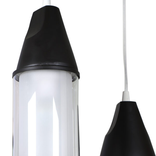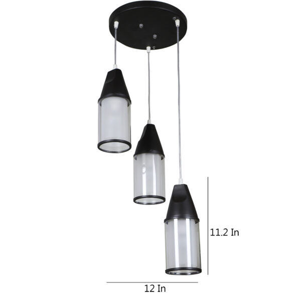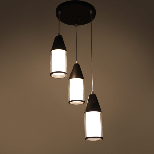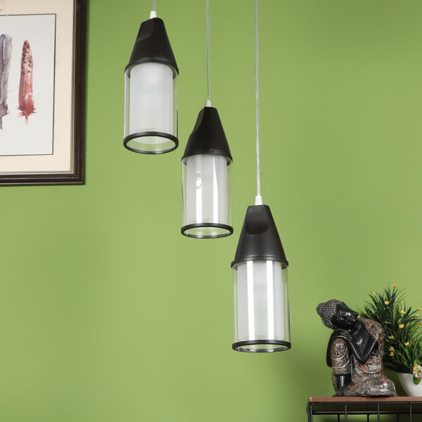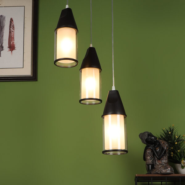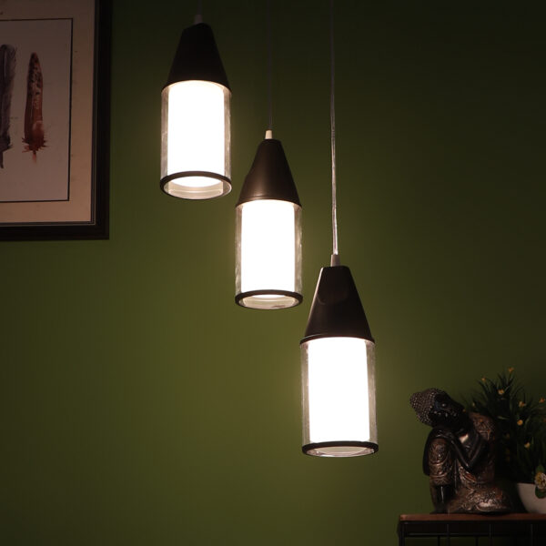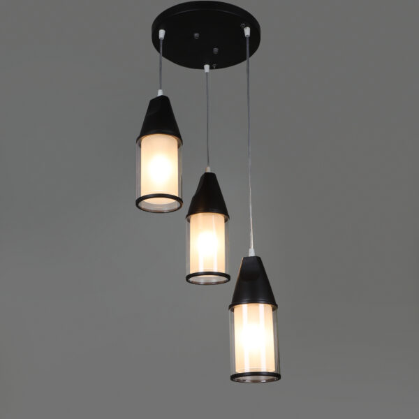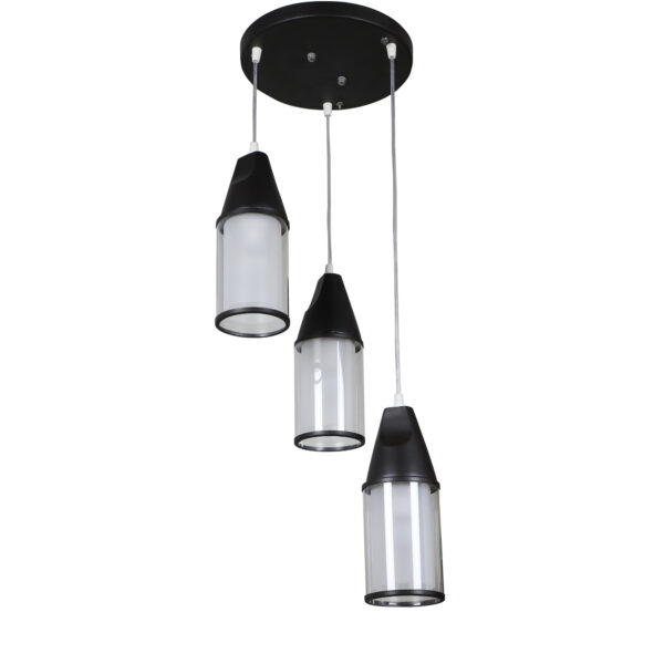Dark brown (wood) finish, modern cylindrical glass with a brown metal ring at the edges, cluster hanging light having three lamps made of mild steel and glass. The suspension can be adjusted at time of installation to the desired height. It is maintenance free, easy to remove glass and wash them, comes with an E27 holder, only the change of lamp is required, which is available locally everywhere. Application includes both residential and commercial premises wherever it matches with your interiors. Also available in single lamp option with code HL4074-1. Can be customized as per requirement in case of bulk quantities. Lamp not included.