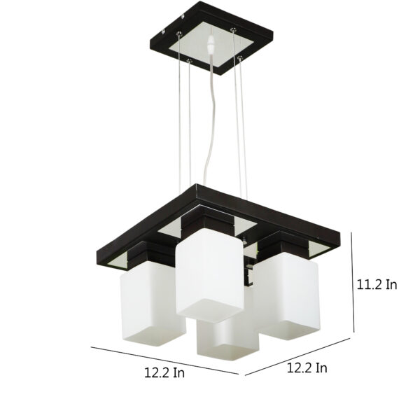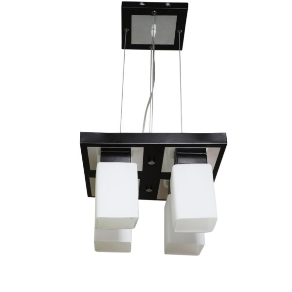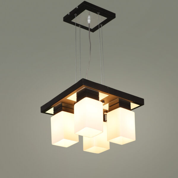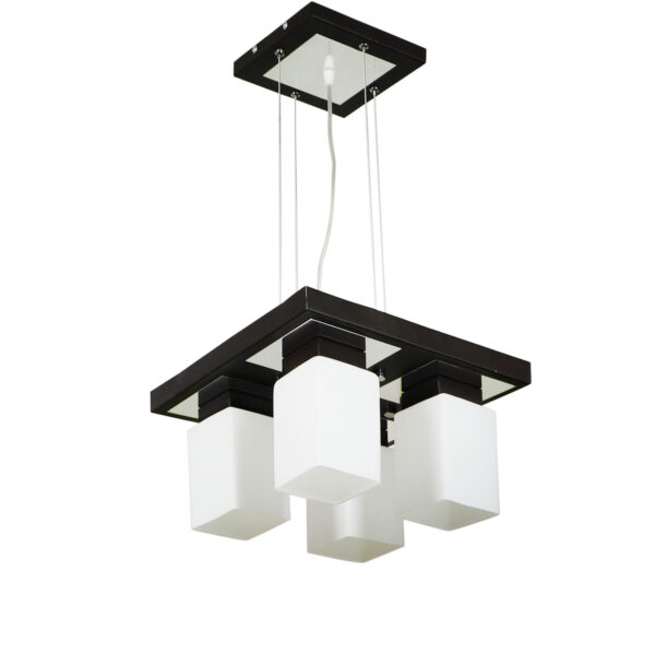 Dark brown(wood – chrome) finish, square long glass mounted on a mild steel plate having four lamps made of mild steel and glass. It is one of the regular design which is never out of trend and is among one of the best sellers. The suspension can be adjusted at time of installation to the desired height. It is maintenance free, easy to remove glass and wash them, comes with an E27 holder, only the change of lamp is required, which is available locally everywhere. Application includes both residential and commercial premises wherever it matches with your interiors. Other variations (color and size) in hanging light – HL3678, HL3679, HL3652. Related chandeliers – CH188, CH189, CH172, CH173. Matching wall light code -WL1775, WL1776. Lamp not included.