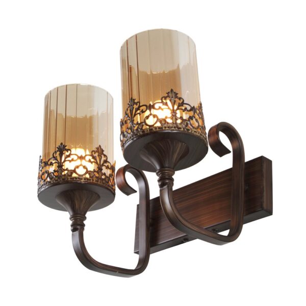 Dark brown (wood) finish, round, cylindrical Champaign colored glasses, double wall light made of mild steel. It is maintenance free, easy to remove glass and wash them. Comes with an E27 holder, only the change of lamp is required, which is available locally everywhere. Application includes both residential and commercial premises wherever it matches with your interiors. Matching single wall light code CW390-1. Matching chandelier code – CH390. Can be customized as per requirement in case of bulk quantities. Lamp not include