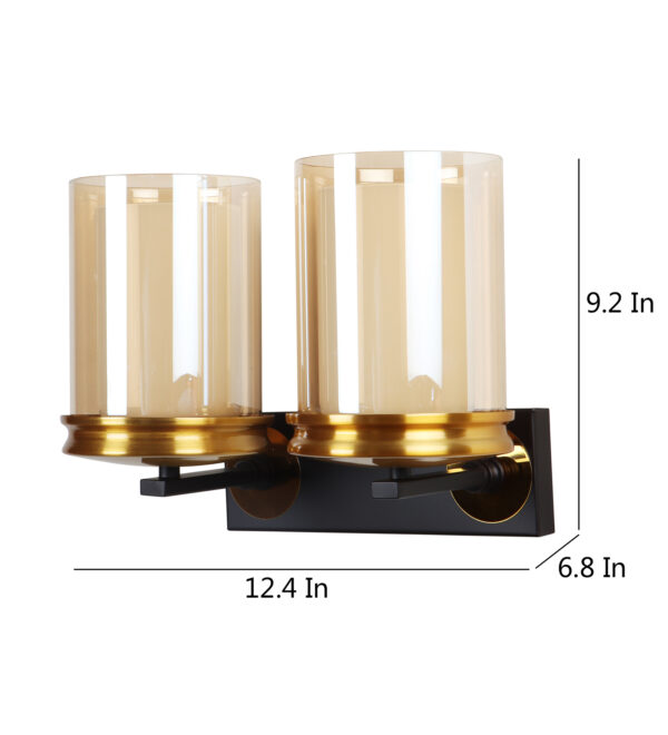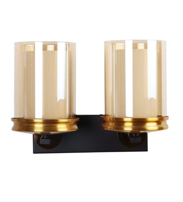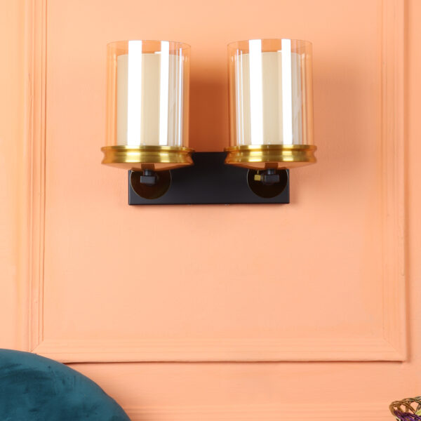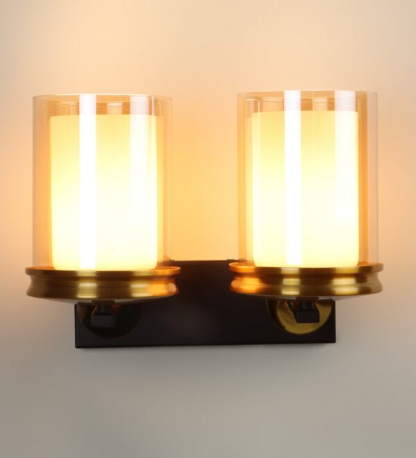 Dark brown (wood), antique gold finish double wall light made of mild steel, with a champaign coloured round cylindrical long two layered glass. It is maintenance free, easy to remove glass and wash it, comes with an E27 holder, only the change of lamp is required, which is available locally everywhere. You can of course swap out the bulb for one that is dimmable, has a higher light output or a different color temperature. Application includes both residential and commercial premises wherever it matches with your interiors. Matching single wall light code – WL2705. Can be customized as per requirement in case of bulk quantities. LAMP NOT INCLUDED.