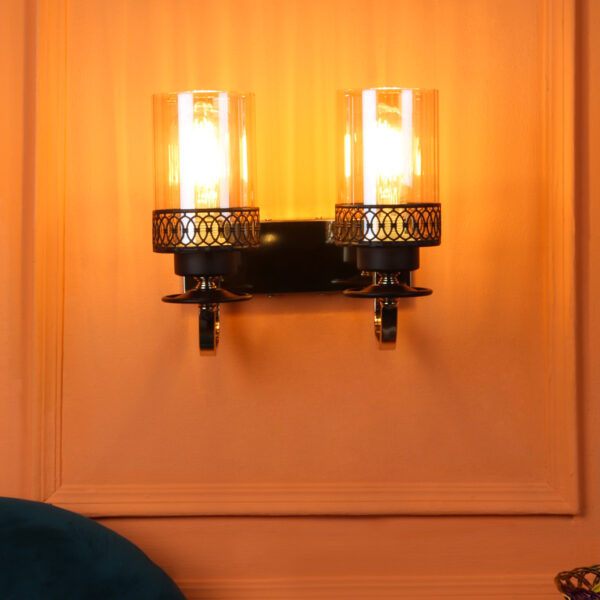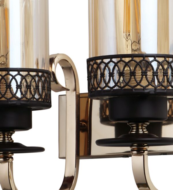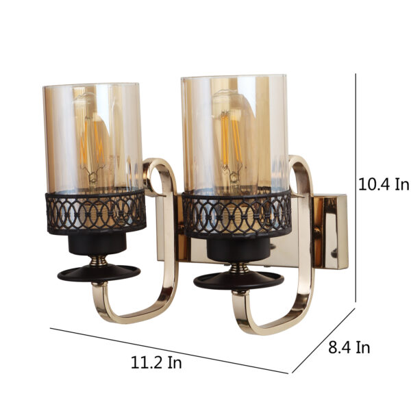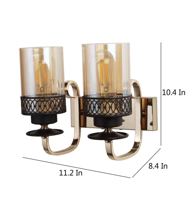 Brown, Gold finish, mild steel double wall light in Champaign colored glass. It is maintenance free, comes with an E27 holder, only the change of lamp is required, which is available locally everywhere. LED filament lamp is recommended to enhance its beauty. Matching single wall light code – WL2707. Matching Chandellier code – CH461. Application includes both residential and commercial premises wherever it matches with your interiors. Can be customized as per requirement in case of bulk quantities. LAMP NOT INCLUDED.