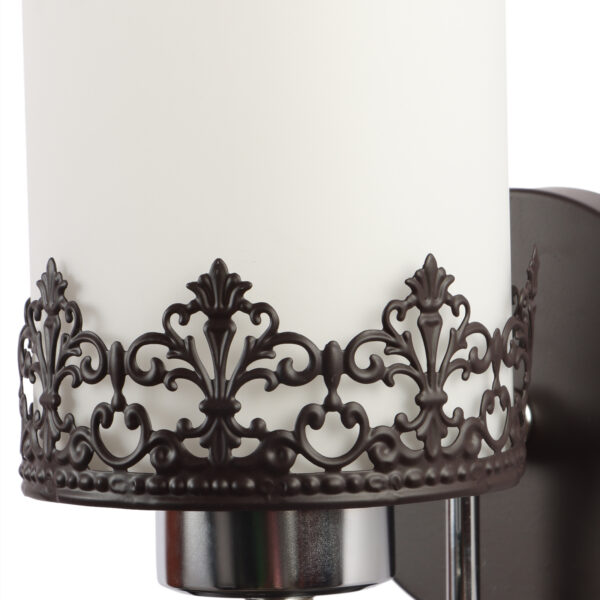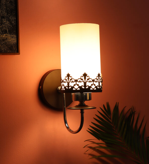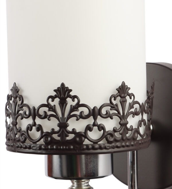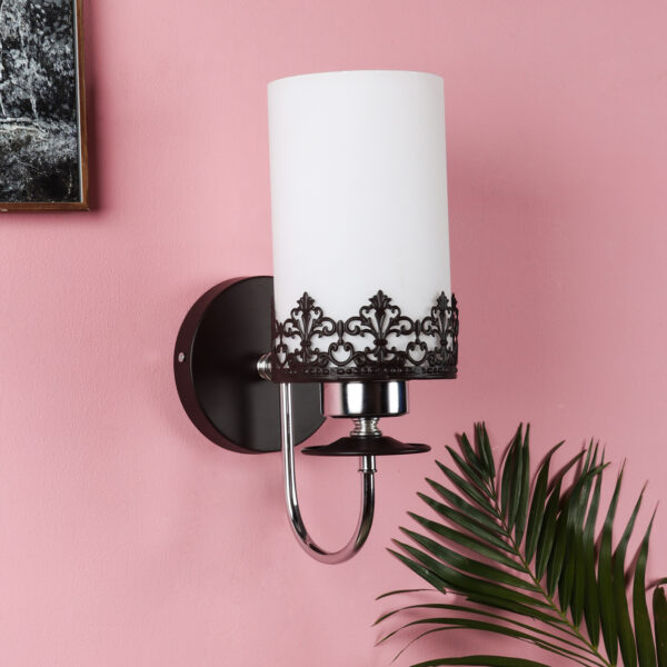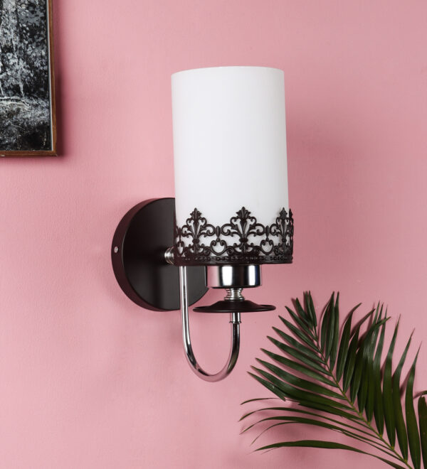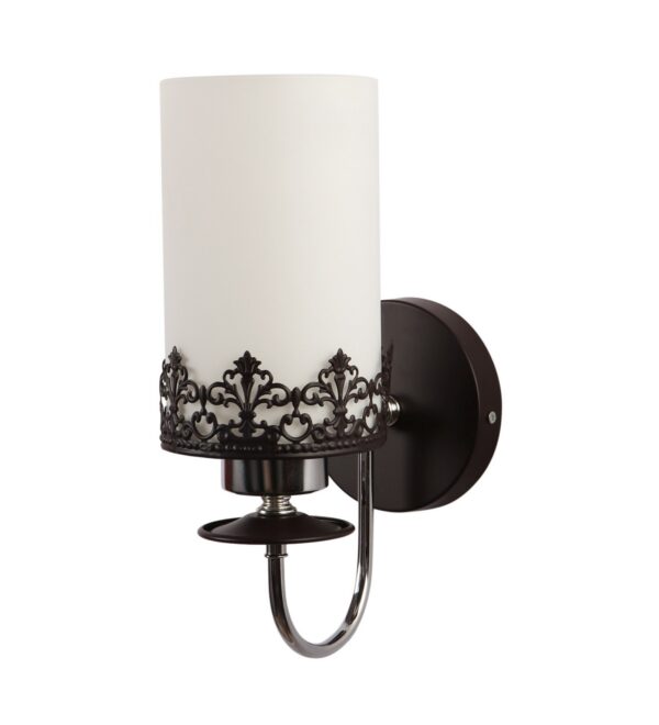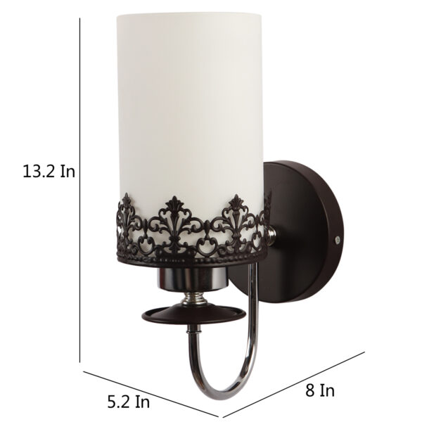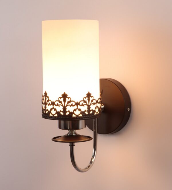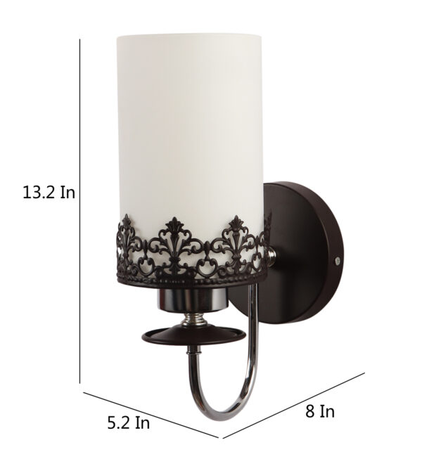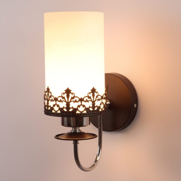 Dark brown (wood) single wall light made of mild steel, with a big round cylindrical white glass. It is maintenance free, easy to remove glass and wash it, comes with an E27 holder, only the change of lamp is required, which is available locally everywhere. You can of course swap out the bulb for one that is dimmable, has a higher light output or a different color temperature. Application includes both residential and commercial premises wherever it matches with your interiors. Matching double wall light code- WL2728. Matching Chandellier code – CH462-6, CH462-9. Can be customized as per requirement in case of bulk quantities. LAMP NOT INCLUDED.