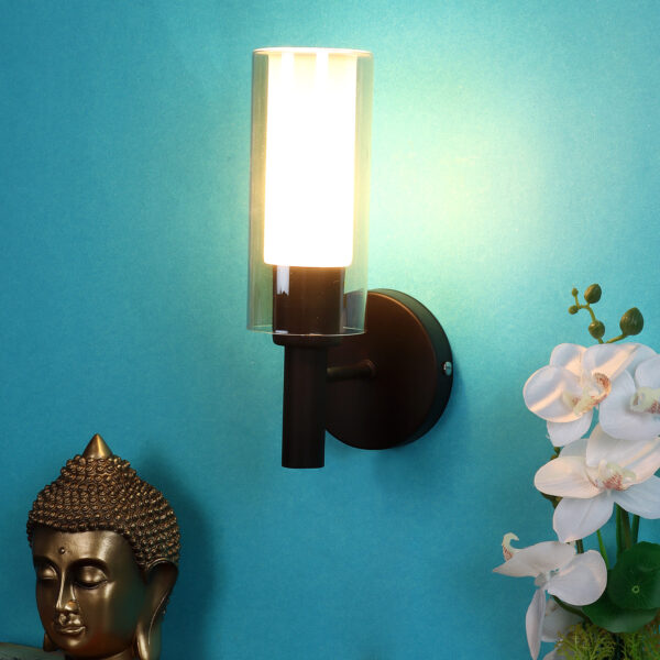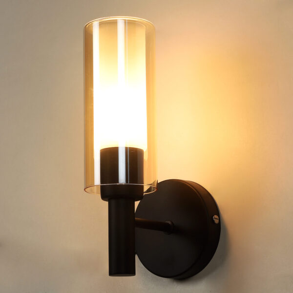Dark brown (wood) finish single wall light having sleek, cylindrical double layered Champaign colored glass. It is maintenance free, easy to remove glass and wash it, comes with an E14 holder, only the change of lamp is required, which is available locally everywhere. Application includes both residential and commercial premises wherever it matches with your interiors. Matching chandelier variations – CH353-3, CH353-6 , CH353-10. Matching hanging variations – HL3980-1, HL3980-3, HL3980-6, HL3980-10. Matching double wall light code WL2212. All designs available in silver (chrome) finish also. Can be customized as per requirement in case of bulk quantities. This along with its variants are the best selling products in our catalogue. Lamp not included.